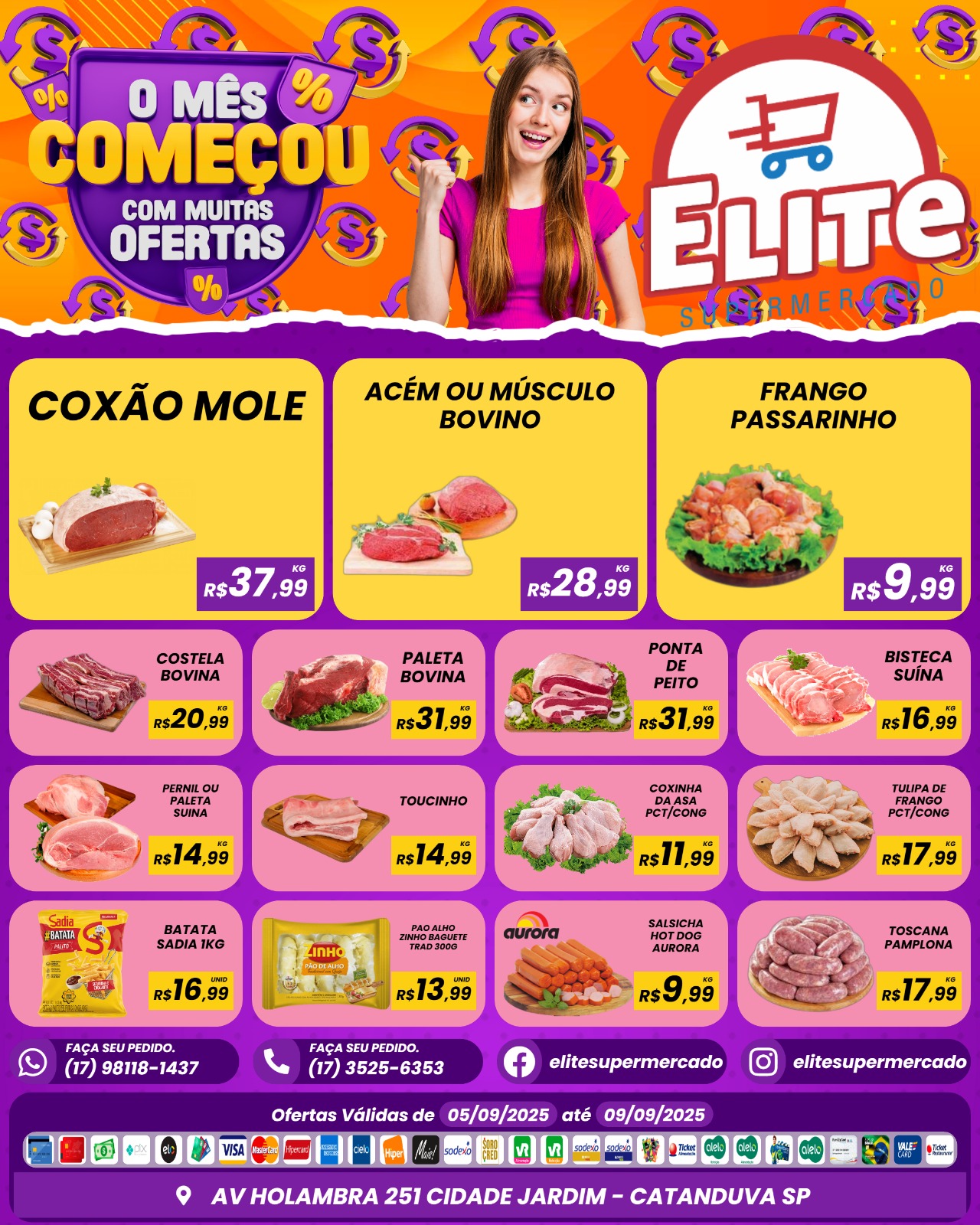 🥬🥩🧀 Elite Supermercado: tudo para sua compra completa! Frutas e legumes fresquinhos 🥕, carnes selecionadas 🍖, laticínios de qualidade 🥛, peixaria 🐟 e padaria irresistível 🥖🍰.